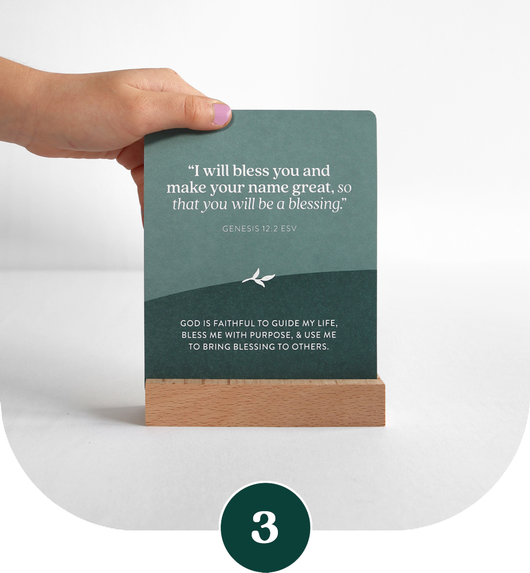 The Scripture at the top grounds you in God’s Word, while the affirmation below helps you internalize biblical truth.